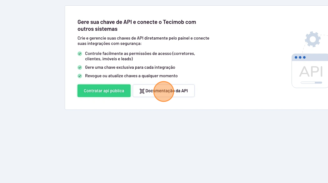- Para visualizar a documentação da API, clique em "Documentação da API" e encaminhe à plataforma que deseja se conectar: