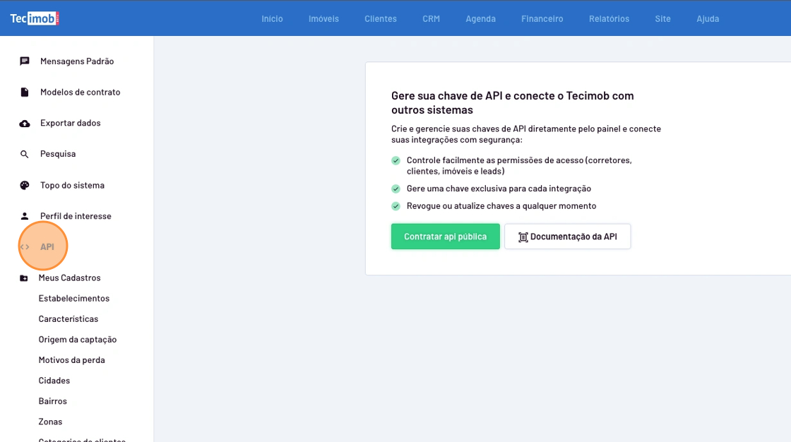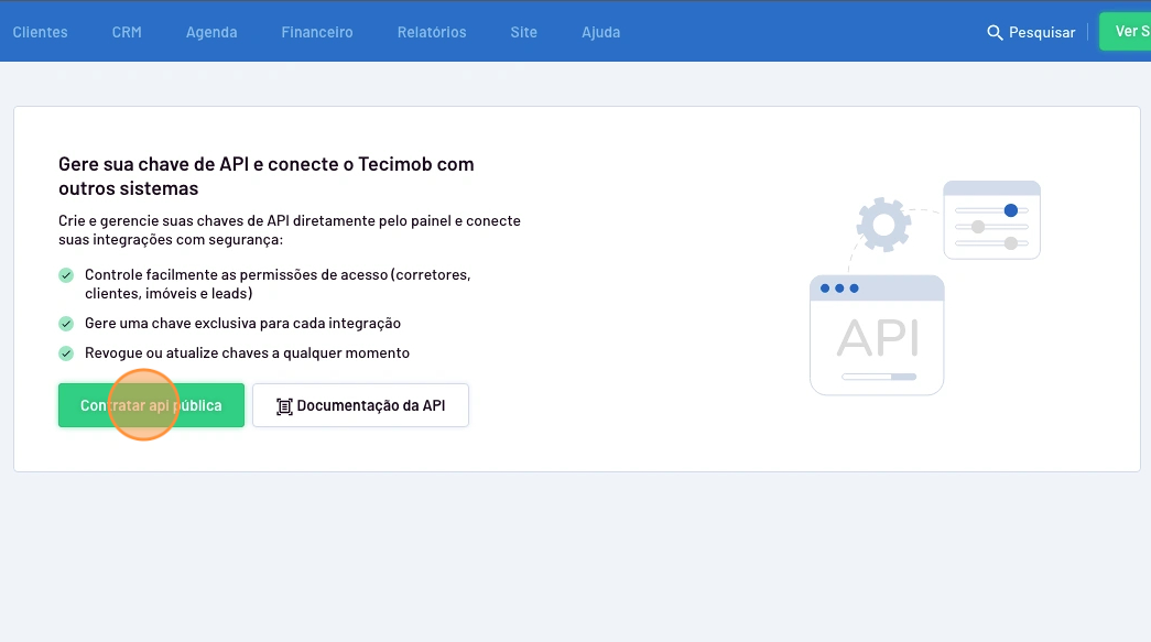 - Para realizar a contratação da API, clique em "Contratar api pública".