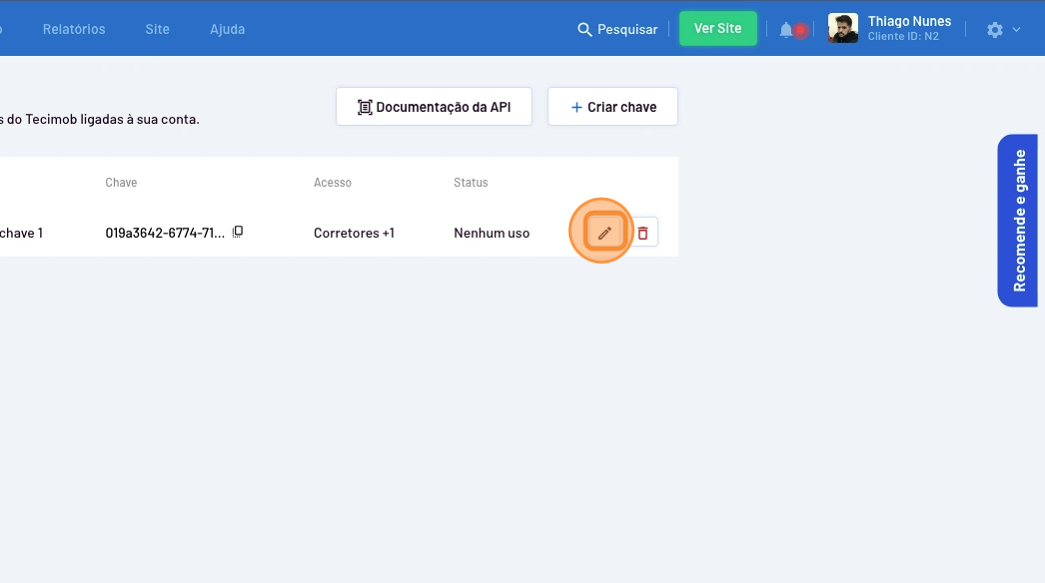 - Para editar as informações da Chave, clique no ícone de lápis: