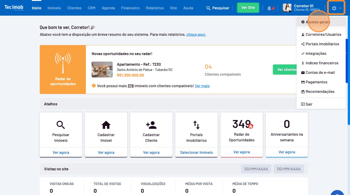 - No ícone de engrenagem, acesse o menu "Ajustes gerais".