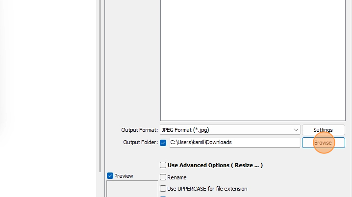 - Clique em "Browse" para definir a pasta que armazenará as imagens após serem diminuidas.