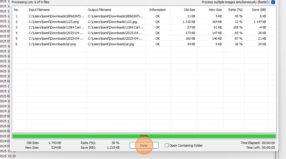 - Ao finalizar o processamento das imagens, clique em "Done".