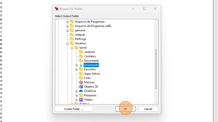 - Selecione a pasta que armazenará as imagens e clique em "Ok".