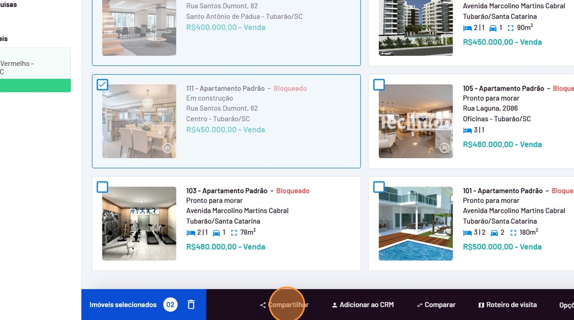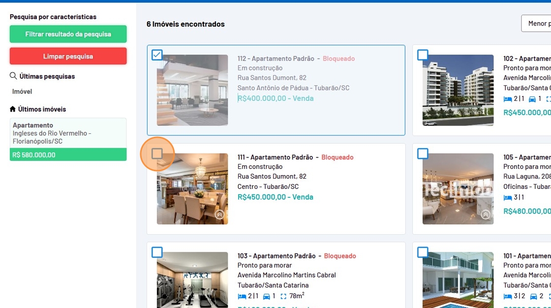 - Selecione os imóveis desejados.