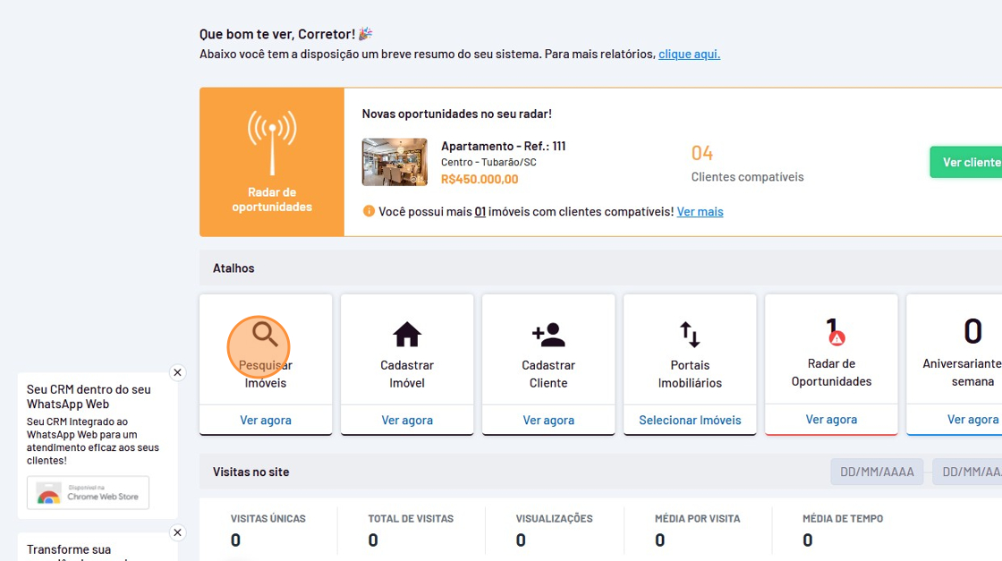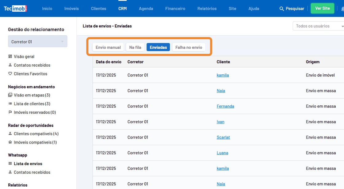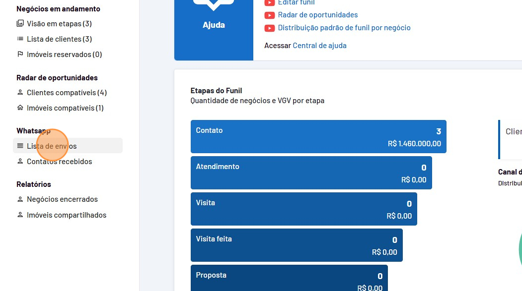 - Para verificar como estão os envios das mensagens, clique em "CRM".