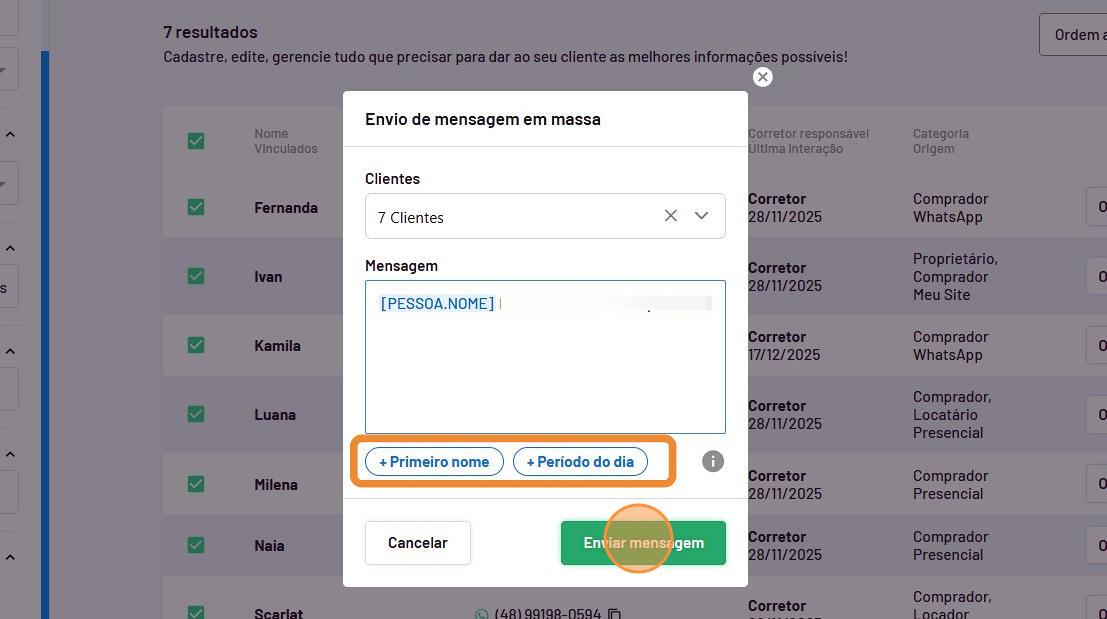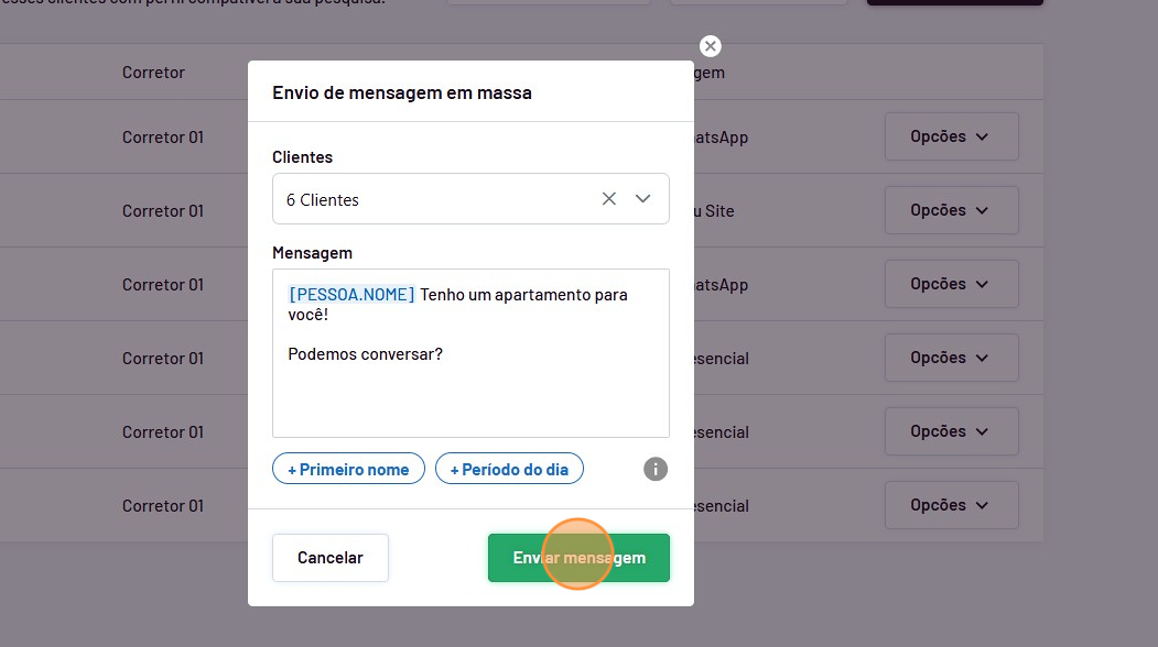 Para fazer envio de mensagens em massa para seus clientes, siga estes passos: