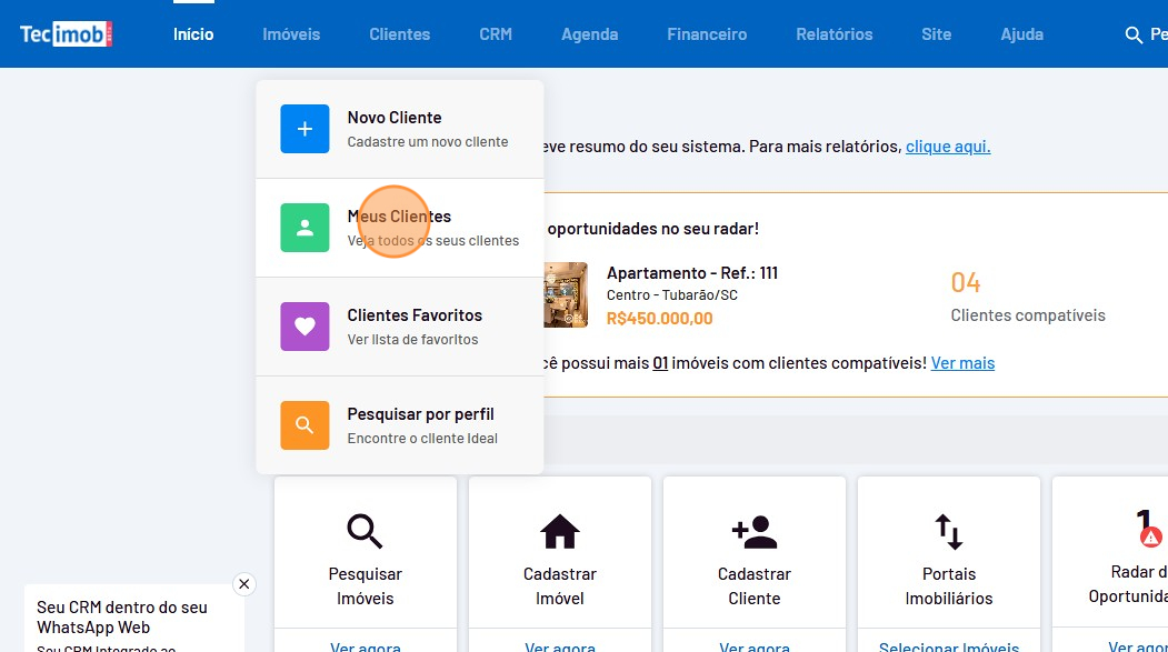 - Vá até o menu "Clientes" e clique em "Meus Clientes".