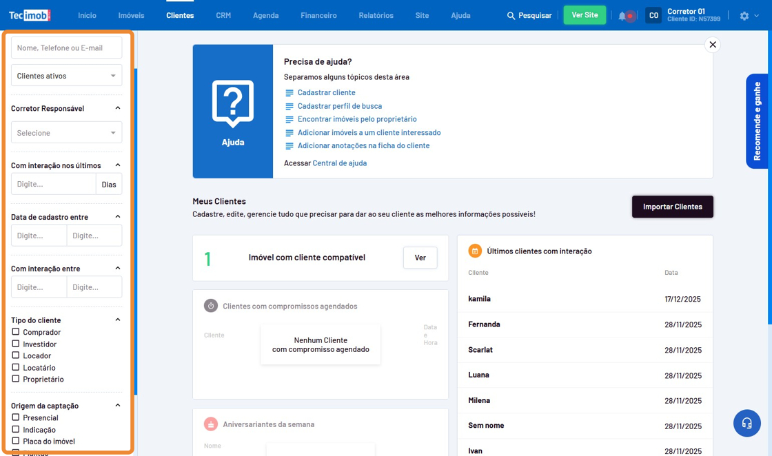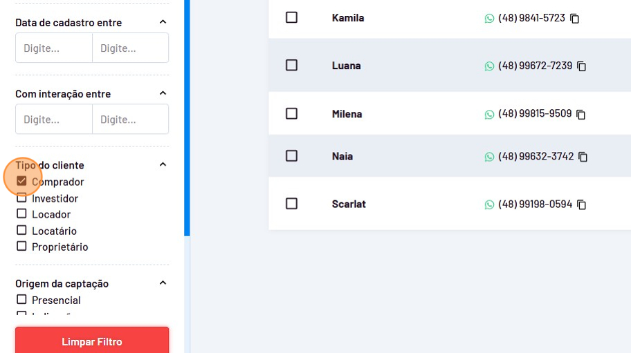 - Realize um filtro para encontrar seus clientes.