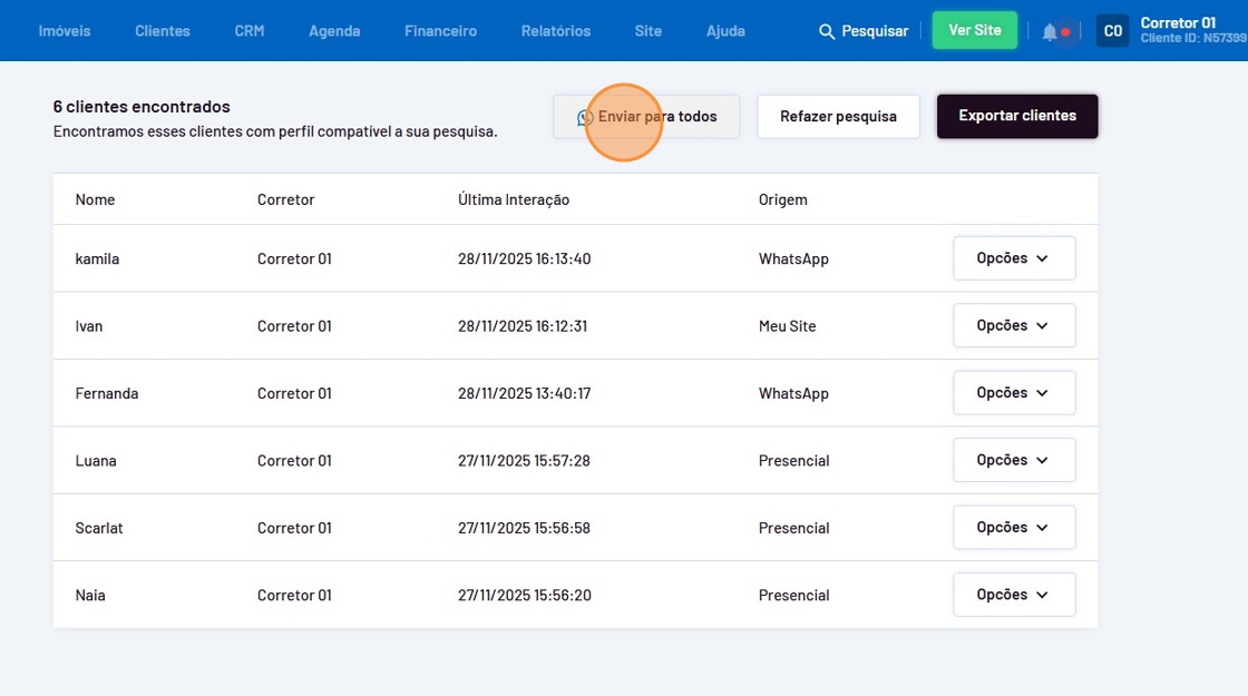 - Após a pesquisa feita, clique em "Enviar para todos".