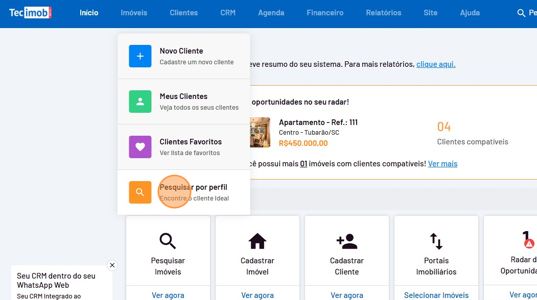 - Vá até o menu "Clientes" e clique em "Pesquisar por perfil".