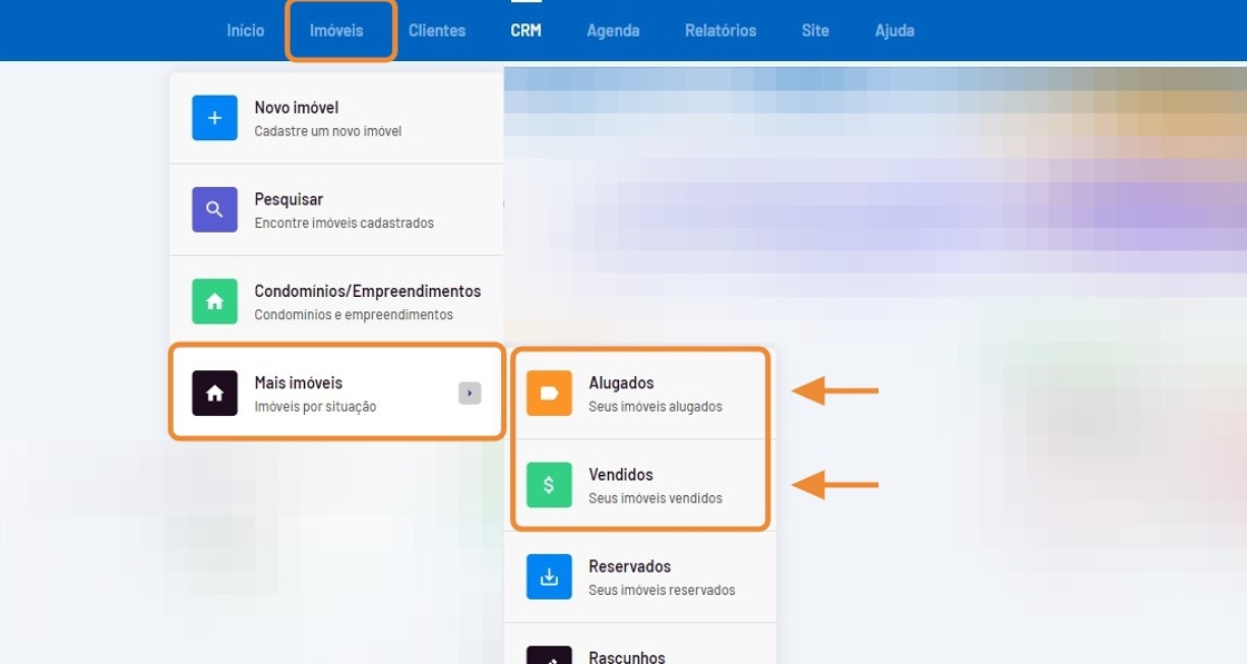 - Os imóveis alugados e vendidos irão para suas respectivas áreas.
